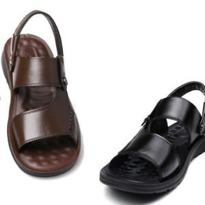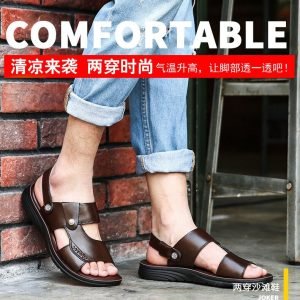 Men’s Summer New Sandals and Slippers Men’s Leather Sandals Adult Thick-soled Beach Shoes Non-slip Open-toe Leather Sandals